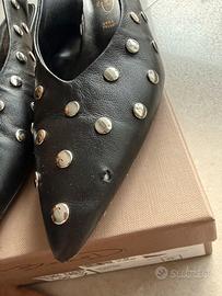 Slingback in pelle nera con borchie col argento Nr 39 Manca 1 borchia davanti vedi foto