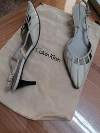 Slingback Calvin Klein colore panna nr. 37.5 ma calza 37 tomaia pelle suola cuoio usate poco