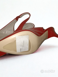 Colore ❤️ rosso, con cinturino dietro il tallone e tacco a spillo basso (kitten heel) 💫