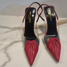 Saint Laurent chica nuova taglia 37 in pelle rossa e plastica trasparente altezza tacco 11cm . Mai indossate come nuove .