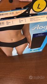 MODELLO MIDI SLOGGI COLORE NERO TAGLIA L Questi slip sono i Sloggi Pure Comfort Midi in confezione da 2 pezzi, realizzati in cotone biologico certificato. Taglio Midi, che offre una copertura media con fianchi leggermente più alti per un comfort quotidiano. Presentano bordi piatti e una fascia elastica in vita progettata per non segnare e rimanere invisibile sotto gli abiti.
