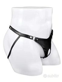 Slip in Pelle per uomo con foro anteriore e apertura posteriore.