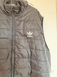 Vendo bellissimo gilet smanicato firmato Adidas Originals in colorazione nera classica. Un capo versatile, perfetto per l'outfit a strati (layering) durante le mezze stagioni o sopra una felpa.