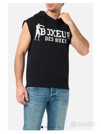 Smanicato da uomo in felpa . Attuale e di impatto la stampa a contrasto eleva il tuo stile ad un livello superiore. Un nuovo modo di vestire sportivo con un pizzico di glamour.