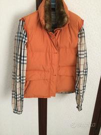 Piumino smanicato colore donna Burberry con collo interno staccabile in pelliccia e maniche interne estraibili Colore arancione Circonferenza cm 100 Lunghezza dalla spalla cm 60