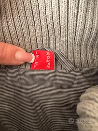 Smanicato grigio con doppia chiusura, con bottoni e cerniera, presenta un cappuccio ed è abbastanza imbottito