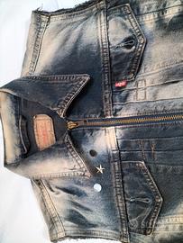 Smanicato donna in jeans nero con macchie chiare, marca Levis taglia S -
