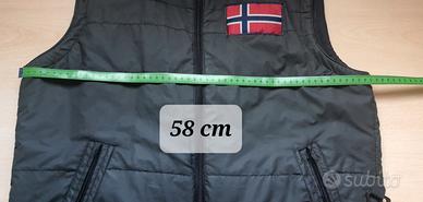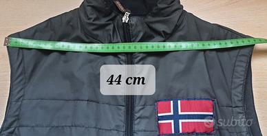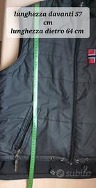 Smanicato imbottito leggero da uomo, colore nero, pratico e facile da abbinare. Ideale per mezza stagione e perfetto sopra felpe o maglioni. Chiusura con zip frontale. Taglia L (misure visibili nelle foto). Tessuto in poliestere. Difetto: manca la zip nella tasca sinistra (tasca comunque utilizzabile).