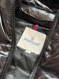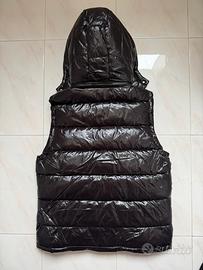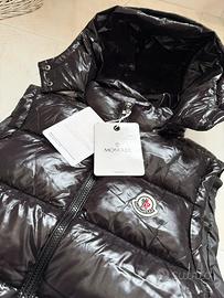 Gilet Moncler nero con cappuccio Nuovo ancora con etichetta. - Tessuto lucido. - Chiusura zip frontale. - Tasche laterali con zip. - Logo Moncler sul petto. Spedzione Rapido 24h🚚✅