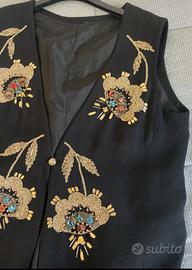 Elegante/casual smanicato con applicazioni floreali in oro,inserti con pietre colorate e perline.