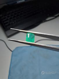 Vendo questo smeraldo naturale dallo Zambia. Taglio: smeraldo Provenienza: Zambia Peso: 0.555 carati Trattamento: oliatura di gelsomino Dimensione: 5.5×4.5 mm
