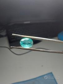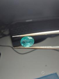 Vendo questo bellissimo smeraldo con buona trasparenza di un azzurrino mare che ricorda la tormalina paraiba. Provenienza: Zambia Dimensione: 7.5×5.5 Peso: 0.925 carati Trattamento: ad olio di gelsomino