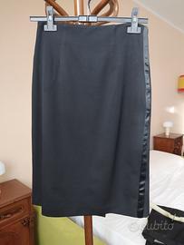 Smoking da donna nero, completo di giacca, pantalone e gonna tubino. Pura lana vergine di qualità ormai introvabile. Indossato 2-3 volte, praticamente perfetto.