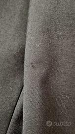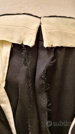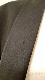 Smoking da uomo in pura lana vergine con rever a scialle con texture satinata. Giacca con unico bottone frontale. Taglia 50. In generale in buone condizioni: un piccolo segno sul rever e sulla manica sinistra, inoltre i pantaloni sono stati stretti. Pertanto, all’interno si nota l’intervento della sarta. MISURE GIACCA (indumento steso su un piano) Torace: 56 cm Schiena: 45 cm Lunghezza: 78 cm Lunghezza manica: 63 cm MISURE PANTALONE Vita: 80 cm (circonferenza totale) Bacino: 52 cm Lunghezza: 105 cm
