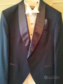 super occasione vendo smoking blu utilizzato una sola volta in occasione del matrimonio taglia L giacca e taglia 48 i pantaloni completo di Fascia colore Blue molto elegante. (Giusto per essere esatti io sono alto 1,88 ) tenuto benissimo ideale per le Grandi occasioni. facoltativo insieme c'è una camicia Bianca slim con bottoni Neri e gemelli ai polsi garantita l'eleganza. scarpe color nero lucido n45