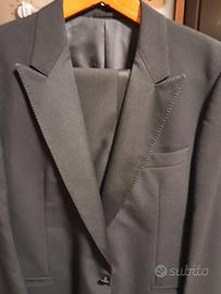 smoking uomo completo due pezzi giacca spalle cm 43 torace cm106 lunghezza 76cm pantaloni vita 88cm lunghezza 105cm elegante e nuovissimo