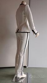 Dalla mia selezione personale di Alta Sartoria: uno smoking da donna di Tiziana Pavoncelli. Rigore e sofisticatezza, un pezzo iconico in pregiato tessuto acetato viscosa bianco con profili neri a contrasto, scelto per la sua struttura scultorea e la sua eleganza senza tempo. Perfetto per una sposa civile audace o per un evento di gran gala.