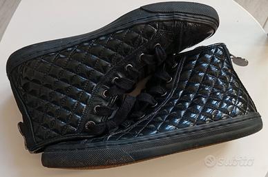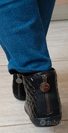 Sneakers alte donna "Geox" in similpelle n°37,nera lucida. -Chiusura con lacci + zip posteriore (decorativa). -Modello comodo e traspirante grazie alla tecnologia “scarpa che respira” Geox.