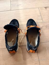 Come da titolo n. 42,5 ( 8,5) nere con suola e lacci arancio. Pari al nuovo