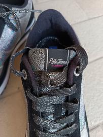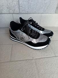 Nuove, solo indossate per prova. Colore nero e argento. Piccolissimo difetto di fabbrica sul dietro della scarpa dx come in foto