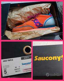sneackers arancioni della saucony, unisex, indossate solo x la misura poi mai utilizzate. sono nuovissime