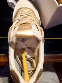 Sneackers donna N°40 colore bianco e oro Modello Bulmya NUOVE mai indossate svendo per errato acquisto. Con scatola Preferisco consegna a mano Milano Vigentino/Prada o spedizione con SUBITO.IT senza possibilità di reso.