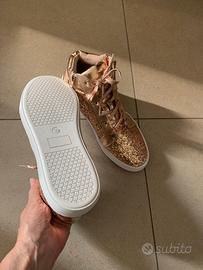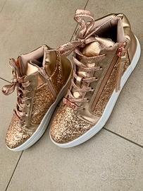 Sneackers Head over Heels nuove, in scatola originale n.39, colore rose gold, ecopelle e glitter, molto luminose. Laccio in lamè, interno in tessuto morbido e leggermente imbottito.