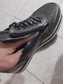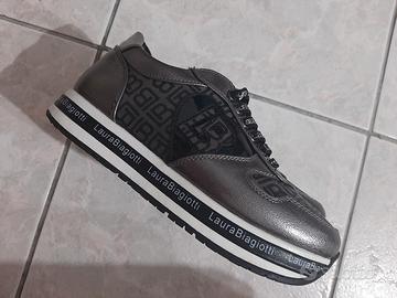 sneackers grigio perlato, indossate 2 volte, hanno lacci e cerniera laterale.