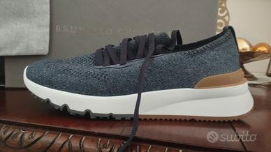 Vendo splendide scarpe da uomo Brunello Cucinelli originali, numero 41. Le scarpe sono nuove, mai indossate, in condizioni perfette come da foto. Modello casual elegante, ideali sia per il tempo libero che per un abbigliamento più raffinato. •Colore: grigio scuro / antracite •Materiale: tessuto tecnico traspirante •Suola chiara, molto comoda •Calzata leggera e confortevole Perfette per chi cerca qualità e stile made in Italy. Consegna: a mano oppure spedizione a carico dell’acquirente. Per qualsiasi informazione o altre foto, non esitare a contattarmi.(prezzo di listino 890)