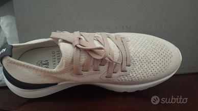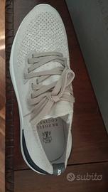 Vendo splendide scarpe da uomo Brunello Cucinelli originali, numero 40 Le scarpe sono nuove, mai indossate, in condizioni perfette come da foto. Modello casual elegante, ideali sia per il tempo libero che per un abbigliamento più raffinato. •Colore: Bianco/ Panna •Materiale: tessuto tecnico traspirante •Suola chiara, molto comoda •Calzata leggera e confortevole Perfette per chi cerca qualità e stile made in Italy. Consegna: a mano oppure spedizione a carico dell’acquirente. Per qualsiasi informazione o altre foto, non esitare a contattarmi.