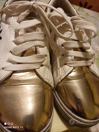 Scarpe Adidas bianche con punte oro. Usate una sola volta