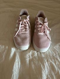 Vendo sneakers Adidas, color rosa cipria/pallido, realizzate in morbido suede (pelle scamosciata) con le tre strisce bianche iconiche.