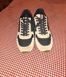 Vendo sneakers originali Aeronautica Militare, modello iconico dal design sportivo e ricercato. Caratteristiche: Tomaia in suede e tessuto tecnico, molto comode e traspiranti. Logo dell'aquila ricamato lateralmente in rilievo. Colori: Blu notte e tonalità di grigio/beige, facili da abbinare a jeans o pantaloni casual. Condizioni: [segni di usura minimi come da foto]. Taglia: [41].