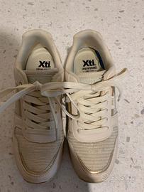 Sneaker Xti Urban Brand street style beige con dettagli oro e glitter. Misura n.36: lunghezza interna cm 24 lunghezza suola cm 26 Condizione ottima!!!