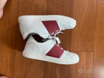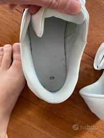 Causa scarso utilizzo, vendo sneakers bianche con banda laterale rossa, numero 43. Usate poco, lavate e sterilizzate. Molto simili ad un modello firmato,