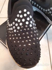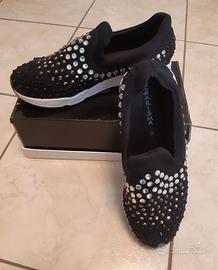 Sneaker Kharisma slip on 1081 licra nero in tessuto con strass, collezione autunno-inverno 2016/17. Plateau bianco di 2,5 cm, tacco di 3,5 cm. Scarpa n. 36, comoda e pratica. Ottime condizioni.