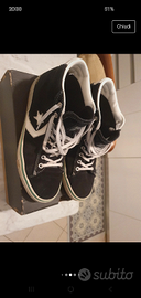 Sneaker da uomo in camoscio nero con inserti di stella e riga converse in pelle bianca. Marca Converse