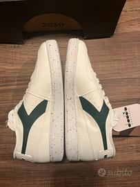 Sneaker Diadora Mi Basket Row Cut 2030 in bianco con dettagli verde scuro e suola melange, realizzata con materiali riciclati. N. 37 (vedi ultima foto). Archivio 1980 Progetto 2030 Tomaia in pelle pre-consumo riciclata su una miscela con poliestere post-consumo riciclato e altri materiali sintetici grezzi Il 57% di questa scarpa è composto da materiali riciclati: ecco la Game Row Cut 2030 Consegna possibile nelle province di Venezia, Padova, Vicenza e Pordenone previo accordo.