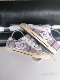 Sneaker Dolce & Gabbana scozzese bianca, viola e rosa. Usate poche volte, calzano corte. La punta in skay bianco ha sofferto un po' per il poco utilizzo