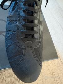 Sneaker da donna nere in pelle e tessuto monogrammato CK.
