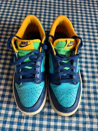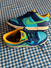 Vendo sneaker Grade School Nike Dunk Low "Kyrie" n. 38 colore Baltic Blue/Electric Algae/Deep Royal/Laser Orange. In buono stato. Consegna a mano o spedizione.
