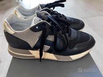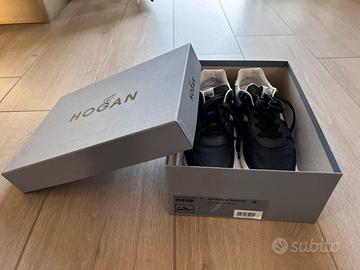 Scarpa Hogan pelle blu e tessuto argento n.39. Poco usate e in ottimo stato. Completa di scatola.