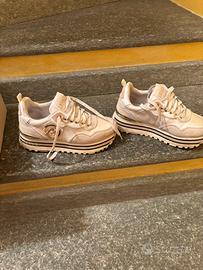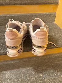 Vendo scarpe da donna Liu Jo modello maxi wonder 24 sneaker in pelle scamosciata colore bianco con logo in metallo con suola platform indossate poche volte