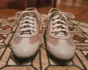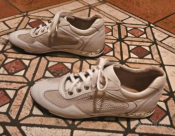 Sneaker da donna Nero Giardini pelle/camoscio P308452D: usate, vendo perché troppo piccole. Colore: bianco/beige. Taglia: 36. Piccoli graffi in punta