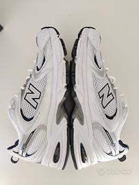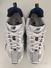 Sneaker New Balance NB MR530SG bianco blu navy. Materiale misto pelle sintetica e tessuto.