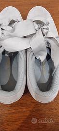 Sneaker Puma donna n.38 colore grigio in camoscio molto morbide con lacci a nastro come nuove.