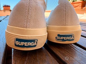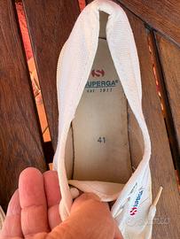 Scarpe Superga colore bianco panna misura 41. Indossate pochissimo. Senza scatola. Marchio sul tallone destro un pochino rotto (ultima foto)