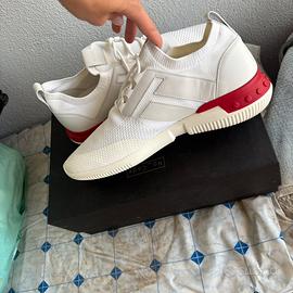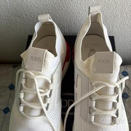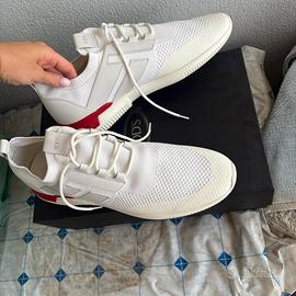 Scarpe scarpa da ginnastica sneaker Tod’s No code basse bicolore bianco e rosso in maglia e stampa logo, interno in pelle e chiusura con lacci suola con gommini Nuovo con scatola Numero 10 che corrisponde a 44,5 EU