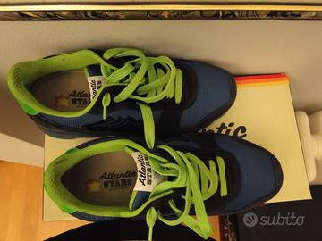 sneaker originali uomo ATLANTIC STARS. colore azzurro lacci verdi, rifiniture pelle. stagione primavera/estate. numero 40 ma calzano poco, usate pochissimo. valore nuovo come da scatola euro 195,00