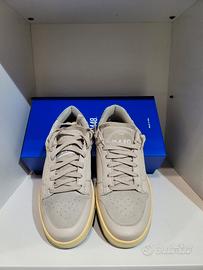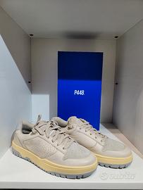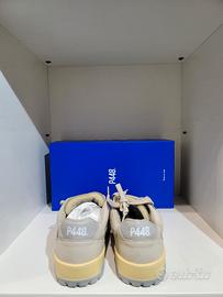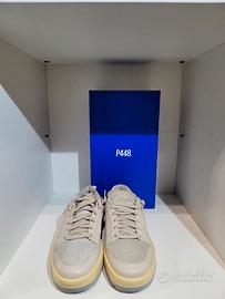 Sneaker uomo con tomaia in pelle vegetale di colore beige. Puntale anteriore con lunetta e piccoli fori sul prima strato,in suede di colore beige. Linguetta centrale in suede con logo P448,imbottita per offrire morbidezza e confort al collo piede. Lacci doppi in cotone vegetale di colore beige. Piccoli fori che formano il logo P448 su entrambi i lati e lunetta posteriore in pelle vegetale di colore grigio con logo P448 bianco. Soletta interna ergonomica in soffice lattice alta 2,5cm per una calzata leggera e confortevole. Battistrada in gomma vegetale super light con fondo antiscivolo bicolore beige e grigio. Articolo nuovissimo di boutique, taglia 40